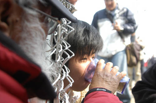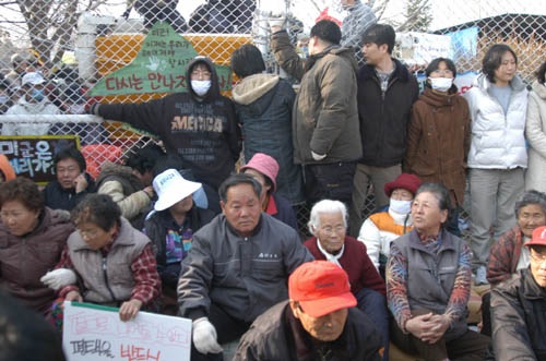 ▲ 아침식사를 마친 대추리 주민들이 대추분교로 모여들고 있다.