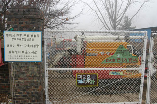 ▲ 법원의 강제집행에 대비해 대추분교 정문을 굳게 잠가 놓았다.