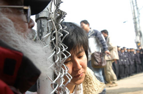 ▲ 학교 뒤편에 있는 가정집으로 경찰이 들어가려하자 주민들이 항의하고 있다.
