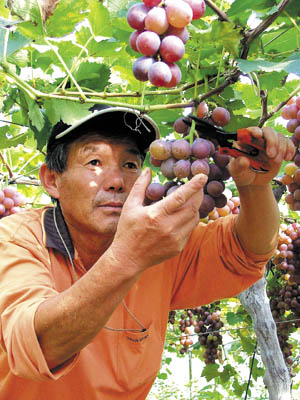 주문이 밀려 주문량을 맞추기 위해 웬만큼 익은 포도를 수확할 법도 하지만 이씨는 검게 잘 익은 달콤한 포도만을 골라 수확한다.