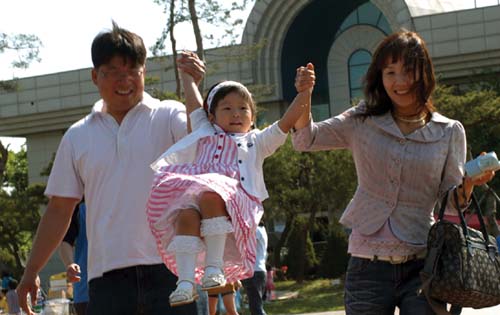 행사에는 가족 단위의 시민들이 대거 참여해 미래의 꿈나무인 자녀들과 즐거운 시간을 함께 보내며 추억을 만들었다. 사진은 시청 앞 광장에서 한 부부가 자녀를 하늘로 높게 띄우는 모습.