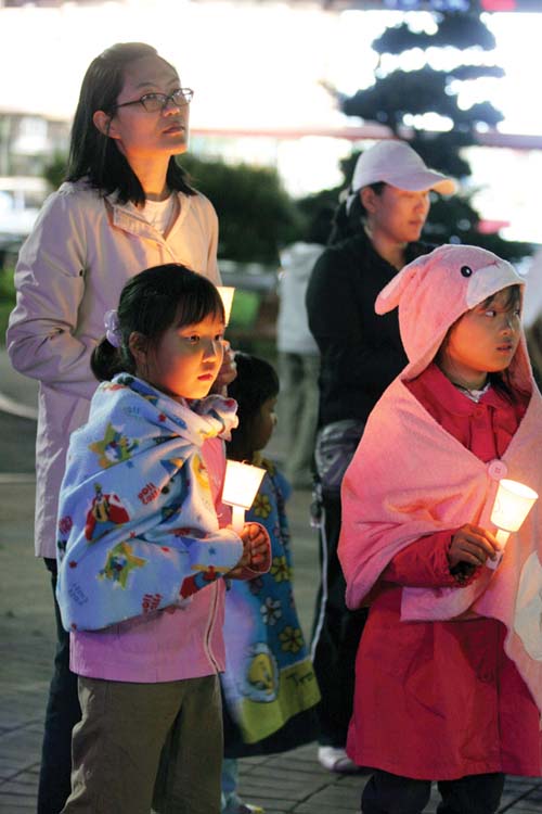 두 아이와 함께 행사장을 찾은 노아무개(사진·안성시 공도읍)씨는 평택에서 열린 촛불행사에 참여해 협상반대에 목소리를 더했다. 촛불행사는 다음날에도 같은 장소에서 계속되었다.