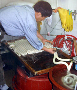 민족의 4대 명절 중 최고로 손꼽히는 '설'이 며칠 남지 않았으나 재래시장의 분위기는 아직 조용하기만 하다. 어려워진 경제 탓인지, 시장 찾기를 꺼려하는 신세대 주부들 탓인지 불과 몇 년 전만 해도 발 디딜 틈 없이 북적대는 '설 시장'의 모습이 마냥 그립기만 하다. (사진은 시장의 한 떡집에서 떡국에 쓸 가래떡을 뽑아내고 있는 장면)(포토뉴스)