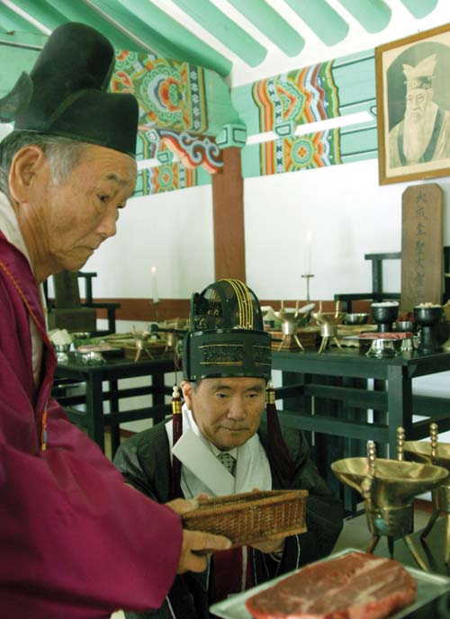 지난달 26일 경기도지정문화재 40호인 진위향교에서 공자를 비롯 중국과 우리나라 유학자들에 대한 ‘석전대제’가 열렸다. 이날 제사에는 유림 50여명이 참석해 성현의 제단 위에 제수를 차려 놓고, 폐백과 술을 올리는 의식을 진행했다.