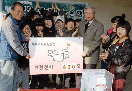 지난 5일 영하 5도로 올들어 가장 추운 기온 속에 열린 이날 후원 행사에는 이 학교 이광섭 교장과 학생 1000여명이 참석해 고사리손의 따뜻한 마음을 전달했다.