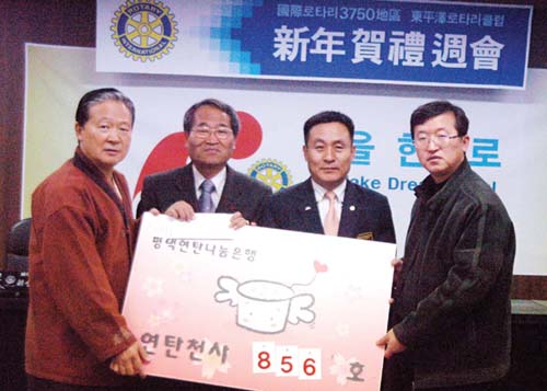 신 회장은 “올해는 극심한 경기불안으로 지역경제가 더 어려워 질 것으로 예상되는 만큼 우리 로타리안들의 봉사가 더 많이 필요한 시점으로 생각된다”며 “이런 점에서 한 해를 시작하는 주회를 맞아 불우이웃돕기 행사를 가지게 됐다”고 의미를 설명했다.