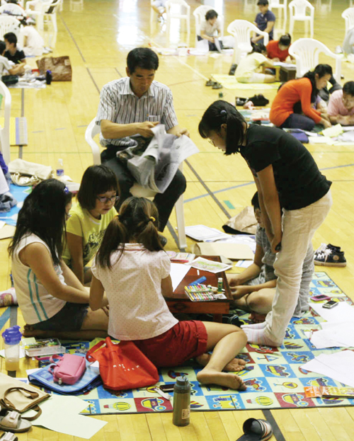 참가자들은 대회장 마룻바닥에 자리를 깔고 준비해온 문방구를 이용해 신문을 제작했다.