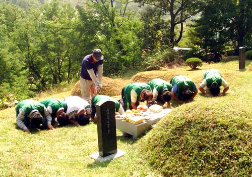 새마을지도자 지산동협의회(회장 양기남)는 지난 18일 생전에 모은 전 재산을 마을에 기탁하고 가신 ‘새마을할아버지’ 묘소에서 추석맞이 벌초 및 성묘를 했다. 추석 차례상은 부녀회의 도움을 받아 차렸으며 행사 후 지나가는 시민 및 등산객들과 함께 음식을 나누어 먹으며 새마을할아버지를 통한 이웃사랑과 경로효친사상을 나누는 뜻 깊은 시간을 가졌다.