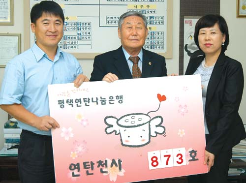 지난해 연탄천사 804호로 200만 원이라는 큰 돈을 후원한 (사)대한노인회 평택시지회(지회장 김용태)에서 올해도 평택연탄나눔은행에 따뜻한 사랑을 보내주었다. 매년 모금활동에 동참하겠다는 지난해의 약속을 지킨 것이다.