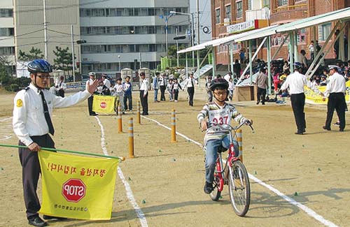 ‘어린이 자전거 안전운전 자격시험’은 신호등, 교차로, 횡단보도 등 실제도로 상황을 재현하고 어린이가 직접 자전거를 운전하여 일정점수 이상을 받을 경우 교통안전공단이 자격증을 발급해 주는 제도이다.