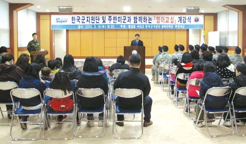 작년에 이어 올해도 실시하는 영어교실은 팽성읍 저소득층 사교육비 부담을 덜고 지역사회의 인적자원을 활용한 윈윈(WinWin)전략이다. 주3회(화·목)씩 74회, 약 10개월 과정으로 미8군한국군지원단 카투사와 주한미군이 월 1회 함께해 수업을 진행한다. 또한 문화교류 행사 및 다문화가정 자녀를 대상으로 방문지도를 실시할 예정이다. 김준규 주민자치위원장은 “영어교실이 국제화중심도시 평택에 걸맞는 인재 양성에 기여하길 기대하며 앞으로도 지속적인 활동을 펼쳐나가겠다”고 밝혔다.