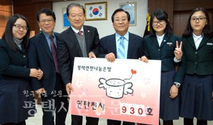 하키 명문으로 잘 알려진 평택여자중학교(교장 리철훈) 학생들과 교직원이 단체로 연탄천사가 됐다. 평택여중은 20일 오전 9시 교내에서 반별로 모은 소중한 성금을 독거노인 등 어려운 이웃들이 따뜻한 겨울을 나는데 사용해 달라는 당부의 말과 함께 평택연탄나눔은행에 전달했다.