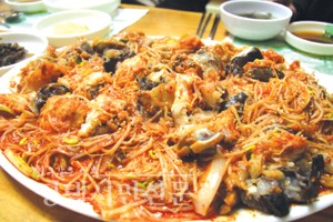 12년 전 오픈한 무진장에선 김 사장의 고집을 이곳저곳에서 발견할 수 있다. 음식 맛이 좋아 점심·저녁땐 자리가 없어 손님들이 줄을 서서 먹는 다는 것은 둘째 치고, 모든 음식엔 조미료를 가미하지 않은 바른 먹을거리라 담백한 맛이 일품이다. 아구찜에 들어가는 콩나물은 녹차 액기스와 마늘 액기스로 키운다니 영양식이 따로 없다. 가정에서 먹는 식단을 그대로 손님께 내간다는 자부심이 그녀를 더욱 돋보이게 만든다.