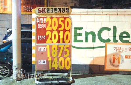 주유소에서 판매하는 보통 휘발유의 평택지역 평균가격이 1리터당 1969원을 넘어섰다. 경유가격도 1리터당 1777원으로 상승세가 계속 된다면 1800원대 진입이 얼마 남지 않았다. 21일 기준 157개 평택시 주유소 중 휘발유·경유 가격이 가장 비싼 곳은 신대동 에스케이 주유소로 2100원·1890원, 가장 싼 오성면 에스오일 주유소 1889원·1689원으로 각각 211원·201원의 차이가 난다.