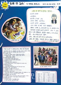 학생들의 글솜씨, 그림실력도 확인할 수 있다. ‘우리들의 솜씨’ 코너에는 학생들의 일기장, 각종 상을 받았던 그림들이 사진으로 장식돼 있다. 그림 그리기를 좋아하는 곽승혜 학생은 광고까지 직접 그려 그림 솜씨를 뽐냈다. “이틀 만에 다 그렸어요”하고 자랑한다.