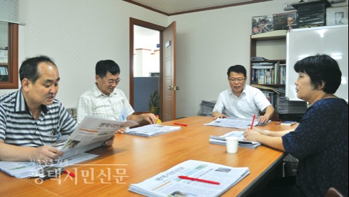 -이상권=겉보기에는 <시민신문>이 고집대로 나오지만 연결이 없다. 단편적 기사 정리가 보인다. 지난 6·7월 아산만 조력댐 반대 이슈 컸다. 지역에서 갖는 어떠한 의미 등에 대해 정확하게 보도가 안 됐다. 그러다가 ‘사실상 백지화’, 뜬금없는 느낌이다. 이런 식으로 지역 현안이 정리 안 되고 넘어가는 것 같다. 현안에 대한 논조를 이어가야 하고 미래 지향적 검토를 해줘야 하는 데 부족하다. 김 국장께서 전담해줬으면 좋겠고.