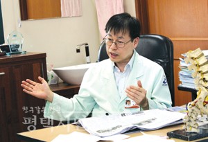 최근 경기남부지역에서 처음으로 개방병원으로 지정된 데 이어, 보건복지부가 지정한 척추 전문병원으로 중소규모 지역에서는 전국에서 유일하게 선정된 굿스파인병원의 박진규 원장을 만나 소감과 앞으로의 계획 등을 들어 보았다. 인터뷰는 5일 병원 진료실에서 진행됐다. <편집자>