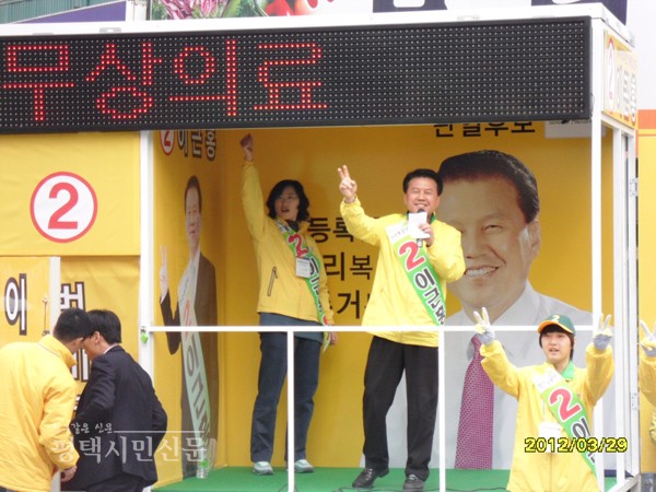 제19대 국회의원 선거 평택시갑 선거구의 기호 2번 이근홍 민주통합당 후보는 29일 송북시장에서 첫 유세를 펼치고 13일간의 공식 선거운동을 본격 시작했다.