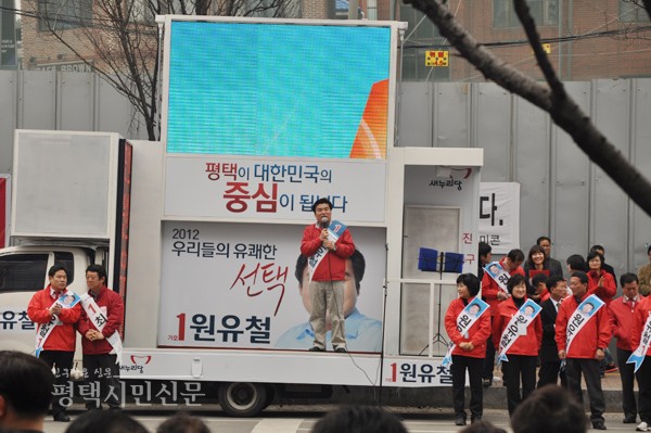 제19대 국회의원 선거 평택시갑 선거구의 기호 1번 원유철 새누리당 후보는 29일 평택시청 송탄출장소 앞 도로변에서 첫 유세를 펼치고 13일간의 공식 선거운동을 본격 시작했다.