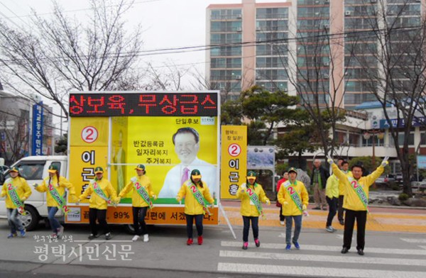 제19대 국회의원 선거 평택시갑 선거구의 기호 2번 이근홍 민주통합당 후보는 30일 세교동주민센터 등지에서 거리 유세를 통해 의정활동 계획 등 공약을 알리며 지지를 호소했다.