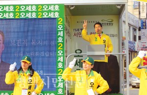 1%에 빼앗긴 서민의 희망을 되찾아 오겠다. 만나는 분들마다 생활이 어렵다고 말씀하신다. 서민의 삶이 왜 이토록 어려운가. 99% 중산층·서민의 삶을 등한시하고, 1% 특권층 부자만을 위한 정책을 펼친 이명박 정부 때문이다. ‘1%만 잘 사는 대한민국’이 아니라 ‘99%도 더불어 잘 사는 대한민국’을 원하시는가. 그렇다면 선택은 기호 2번 오세호”라고 했다.