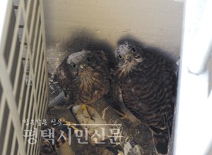 포승읍 명지아파트에 천연기념물 제323호인 황조롱이가 둥지를 틀었다. 14층 베란다 에어컨 실외기가 있는 한쪽 구석에 황조롱이 가족이 터를 잡았다.