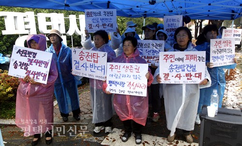 송전탑반대죽백2동대책위원회(공동대표 최웅식, 공현택)는 지난22일 시청 서문 앞에서 “한전과 평택시청은 송전탑 추진을 즉각 중단하라”며 항의 방문하고 ‘송전탑 설치 반대와 선로 변경 철회’를 요구하는 진정서를 시에 제출했다.