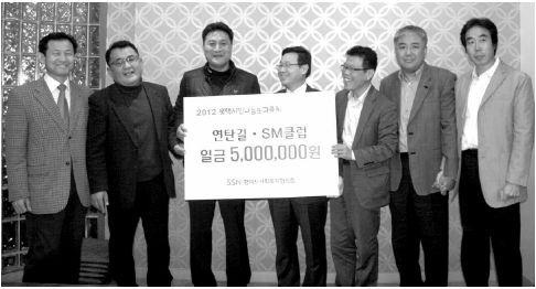 지난 30일 쌍용자동차 봉사 동아리 ‘연탄길’(회장 김명복)과 봉사단체 SM(스페셜 멤버스)클럽은 평택시사회복지협의회(회장 오중근)에 나눔 문화 축제 기금을 전달했다. 나눔 문화 축제는 지난 20일 평택시 사회복지협의회 주최로 ‘제13회 사회복지의 날’을 기념하여 개최됐다.