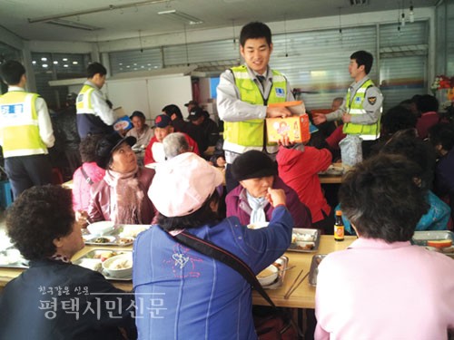 평택경찰서(서장 박상융) 청렴동아리 회원 30명과 청렴분과위원 2명 등 32명은 3월 28일 오전 12시 평택시 통복동에 있는 무료급식소를 방문, 독거노인들에게 배식 봉사활동을 펼치고 사랑의 물품을 전달했다.