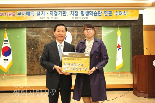 (사)평택시민아카데미(회장 황우갑)가 지난 9일 경기도교육청에서 도교육감 지정 문자해독 설치·지정 기관으로 선정돼 현판을 수여 받았다.