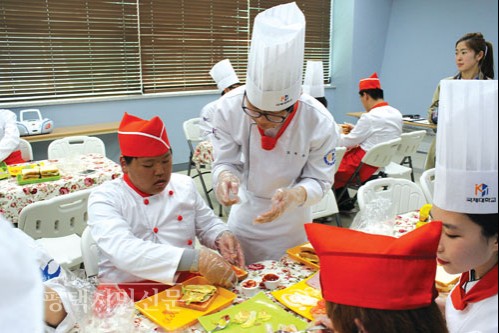 지난 10일에는 요리에 관심이 있는 장애인 15명과 국제대학교 호텔조리학과 학생 15명이 함께 딸기쉐이크와 클럽샌드위치 50인분을 만들어 신장동에 있는 신흥경로당 노인 40명에게 제공했다.