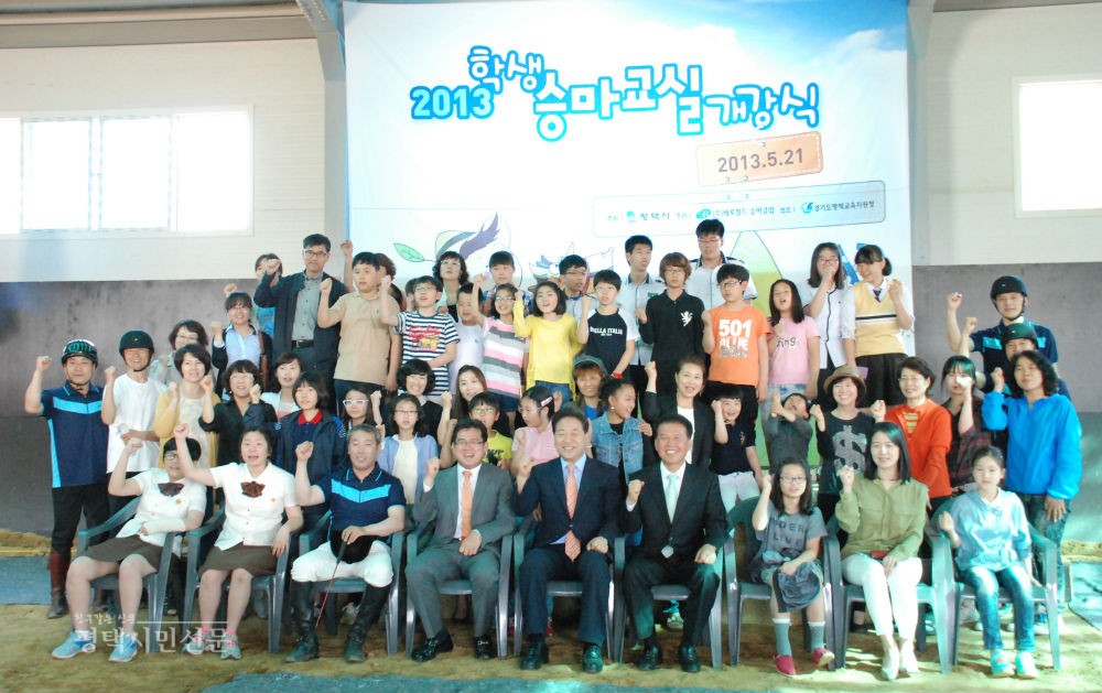평택시는 지난 21일 지제동 소재 (주)레포필드 승마클럽에서 학생에게 승마체험 기회제공과 승마산업 육성을 위한 ‘2013 학생 승마교실’개강식을 가졌다.