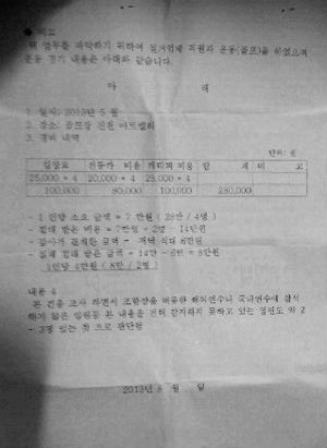 한편, 평택경찰서는 문건 작성자와 특정업체로부터 500만 원을 부당하게 받았다고 지목된 임원, 관련 직원 등을 소환해 조사하는 등 수사에 착수, 귀추가 주목된다.