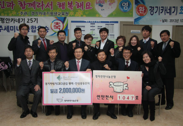 (사)경기카네기CEO클럽 평택·안성총동문회(회장 채규암)는 지난 4일 평택연탄나눔은행(공동대표 오중근·김명복·김기수)에 연탄기금 200만 원을 전달해 1047호 연탄천사가 되었다.