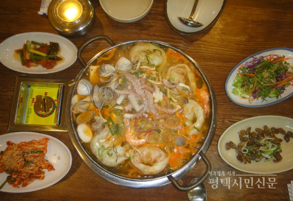 출출한 점심시간, 들어서자마자 기분 좋고 맛좋은 음식냄새가 코끝을 자극한다. 여기저기 삼삼오오 모여앉아 해물만두전골, 낙지칼국수전골, 얼큰한 해물 만둣국, 시원한 황태 만둣국, 등 만두전문집답게 모두들 만두 먹기에 여념이 없다. 만두전골 끓는 소리에 잃어버린 입맛이 되살아나고 뭘 먹을까 망설일 틈도 없이 이 집의 대표음식 ‘해물만두전골’을 주문한다.