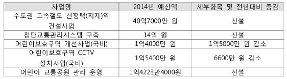 건설교통사업소에서 올해부터 명칭이 바뀐 안전건설교통사업소 건설하천계획과의 올해 예산은 126억여 원으로 전년대비 46억2000여만 원 감소했다. 통복고가교의 노후화와 통복로타리의 상습적인 교통정체를 해소하기 위한 ‘통복천 폐천부지를 활용한 도로 건설사업’의 타당성 검토 및 도시관리계획 시설 결정 용역비가 올해 5000만 원으로 계상됐다.
