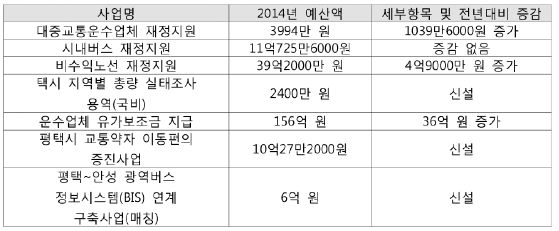 교통약자 이동편의 증진사업은 지난해 7월부터 평택도시공사로 교통약자특별교통수단과 이동지원센터가 위탁됨에 따라 위탁 지원금과 사무관리비 등으로 10억여 원이 계상됐다.