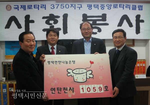 올해로 설립 30주년을 맞는 평택중앙로타리클럽(회장 박헌균)은 지난 22일 어려운 이웃을 위한 연탄 5000장을 기탁하며 1059호 연탄천사가 됐다.