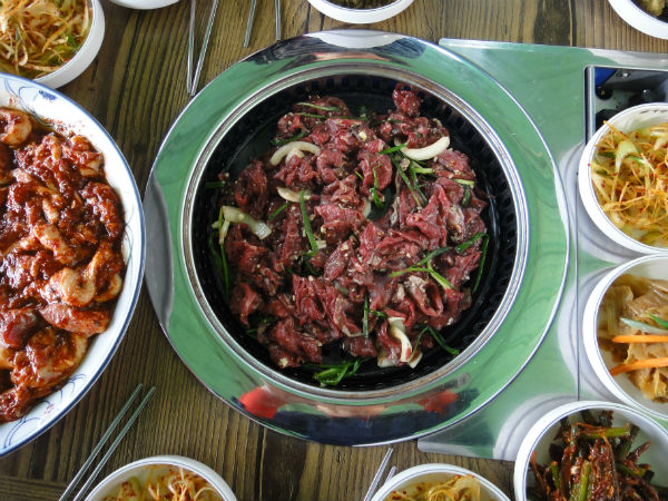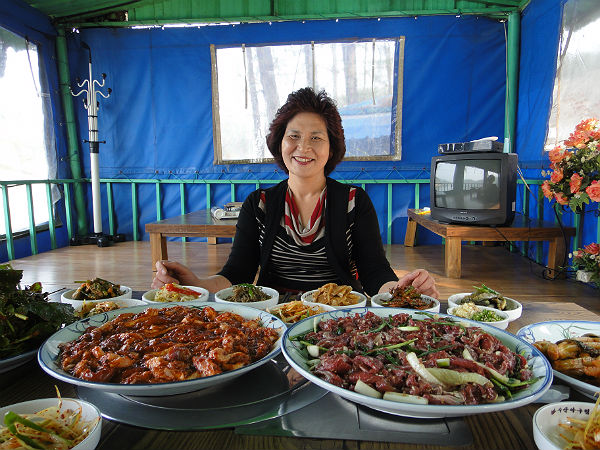 “태양초 고춧가루를 적절하게 넣었어요. 제가 직접 유기농법으로 농사지은 겁니다. 여기 올라온 밑반찬과 야채 모두 농사지어서 사용하고 있어요. 고기가 잘 타지 않죠? 그것은 양념을 할 때 물엿이나 조미료를 일체 쓰지 않기 때문입니다. 단맛은 모두 천연꿀로 내거든요. 양봉하는 오빠 덕을 톡톡히 봅니다.”