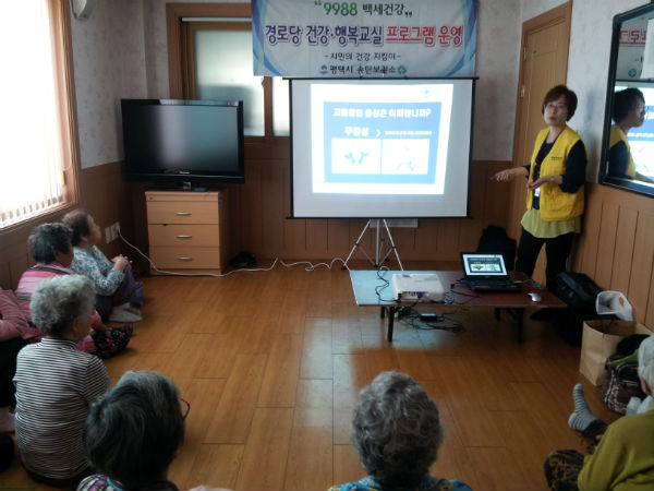 [평택시민신문 배두순 기자] 평택시에서는 경로당을 대상으로 보건소 방문간호 전문 인력 및 지역 내 운동전문 강사와 백세건강관리팀을 구성하여 ‘경로당 건강, 행복 교실프로그램’을 운영 노년기 건강증진을 도모 하는데 주력하고 있다.