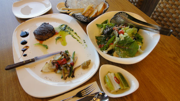 육질의 부드러운 고기 맛을 보고 싶다면 단연 안심 스테이크일 것이다. 두툼한 안심살에 곁들인 버섯야채볶음과 세 가지 소스, 발사믹, 파슬리 패스토, 롤 그레인 머스타드는 정말 환상적이고 감미로운 맛을 선사한다. 치즈가루를 뿌린 야채 샐러드와 오이 무 피클, 갓 구운 빵은 솔솔 풍기는 냄새만으로도 구미가 당긴다. 질 좋은 고기와 신선한 식재료 사용을 원칙으로 하고 있음을 한 눈에 알 수 있다. 오전 11시부터 오후 3시까지는 해피 런치 스페셜 요리가 저렴하게 제공된다. 런치 스페셜세트(1만 3000원)는 식전 빵, 오늘의 샐러드, 오늘의 파스타에 커피 또는 음료가 나오며 오늘의 파스타 대신 기호에 맞는 파스타를 주문하면 2000원이 추가된다.