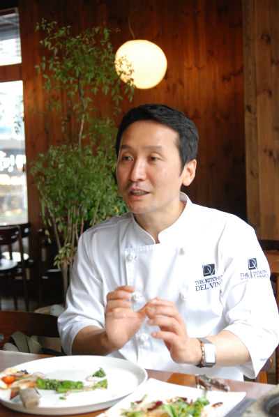 리츠 칼튼 호텔에서 십 년 동안 소믈리에를 비롯해서 식음료 쪽, 양식 일은 거의 다 경험해 봤고, 이태리조리학교 일꾸오꼬 알마를 졸업했다는 김광섭 사장. 이탈리아어로 ‘비노’는 ‘와인’이라는 뜻이고, ‘델’은 ‘-의’라는 뜻이다. 이름에서 알 수 있듯이 ‘더키친 델비노’는 프랑스, 이탈리아, 스페인, 호주, 미국, 칠레 등 다양한 국가의 와인이 나라별로, 레드와 화이트와인 별로 정돈돼 있어 전문 와인 바와 비교해도 손색없을 정도다. 와인을 잘 모르더라도 입맛과 취향에 맞게 추천을 받을 수 있다.
