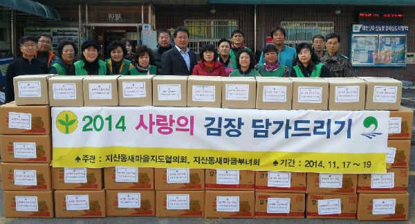 이날 행사에는 지산동 새마을 남․여지도자가 주관이 되고 통장협의회 등 7개 단체원과 주민 70여명이 김장 담그기 행사에 참여하여 어려운 이웃의 어려움을 함께 나누고 더불어 살아가는 뜻 깊은 행사를 가졌다.