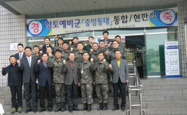 지난 30일 51사단 멸공대대장(중령 김두열) 주관으로 평택시의회 이희태의원, 김재균의원, 중앙동장 김태환, 중앙동 방위협의회 위원, 인근 예비군 지휘관 등 30여명이 참석한 가운데 ‘중앙동대 통합 현판식’을 가졌다.