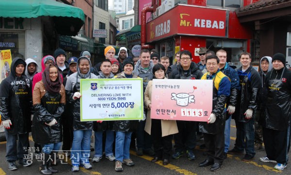 강추위는 지나갔지만 아직도 추운 나날을 보내고 있는 지역주민을 위해 주한미공군 제7공군 사령부 정보처 장병들이 따듯한 온기를 함께 나눴다. 지난 22일 제7공군 사령부 장병들은 그 동안 월급에서 조금씩 기금을 모아 사랑의 연탄 5000장을 평택연탄나눔은행에 전달했다. 수잔 엠 스트리터(Suzanne M. Streeter) 대령 외 장병 30여명은 신장1로(신장동)에 위치한 보온이 안 되는 집에서 혼자 살고 있는 성아무개씨(여·78세)를 위해 직접 연탄 300장을 전달하기도 했다.