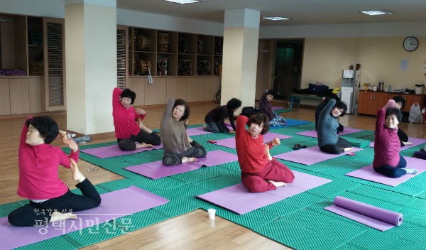 이 곳은 칠원동 동광아파트 옆 송탄주민자치센터, 주민센터 프로그램 중 요가반 강의가 한 창 진행 중이다.