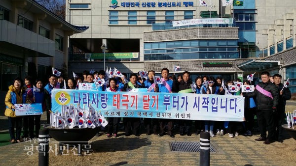 26일 진위면 바르게살기위원회(위원장 송인선)는 제96주년 3.1절을 맞아 나라사랑 태극기 달기 운동을 열었다.