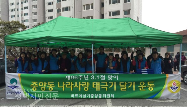 광복 70주년, 제96주년 3․1절을 맞이하여 선열들의 숭고한 독립정신을 계승 발전시키고, 국민적 역량을 하나로 집결시키는 계기가 될 수 있도록 “나라사랑 태극기 달기 운동” 캠페인을 전개하고자 중앙동 바르게살기위원회(회장 이병철)가 나섰다.