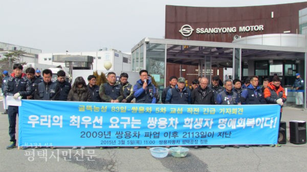 해고자 복직 등에 관한 쌍용자동차 노·노·사 협상이 4차까지 별다른 소득 없이 끝났다. 그런 가운데 5차 협상을 앞두고 금속노조 쌍용차지부는 5일 오전 11시 칠괴동 쌍용차 정문 앞에서 긴급 기자회견을 열었다. 이날 쌍용차지부는 자신들이 가장 원하는 교섭 결과는 26명의 희생자 명예회복과 유가족 생계 대책이라고 주장하며, 해고노동자와 그 가족들의 이야기를 전했다.