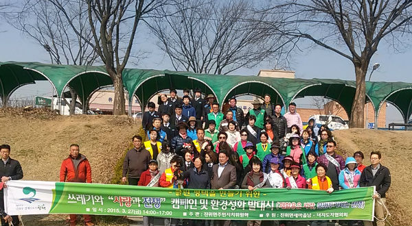 진위면사무소(면장 이학용)는 지난달 27일 진위면 21개 단체 회원 및 진위중학교 학생 등 100여명이 참여하며 환경정화 봉사단 발대식을 갖고 ‘쓰레기와 사랑과 전쟁’ 캠페인을 실시했다.